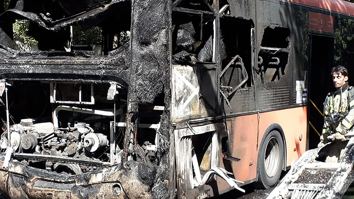 آتش گرفتن اتوبوس خط واحد در میدان رسالت / لحظات وحشت برای مسافران + عکس ها