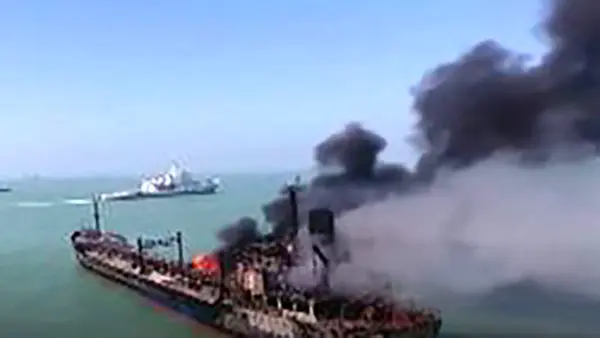 انفجار نفتکش در تصادف با کشتی باری + فیلم