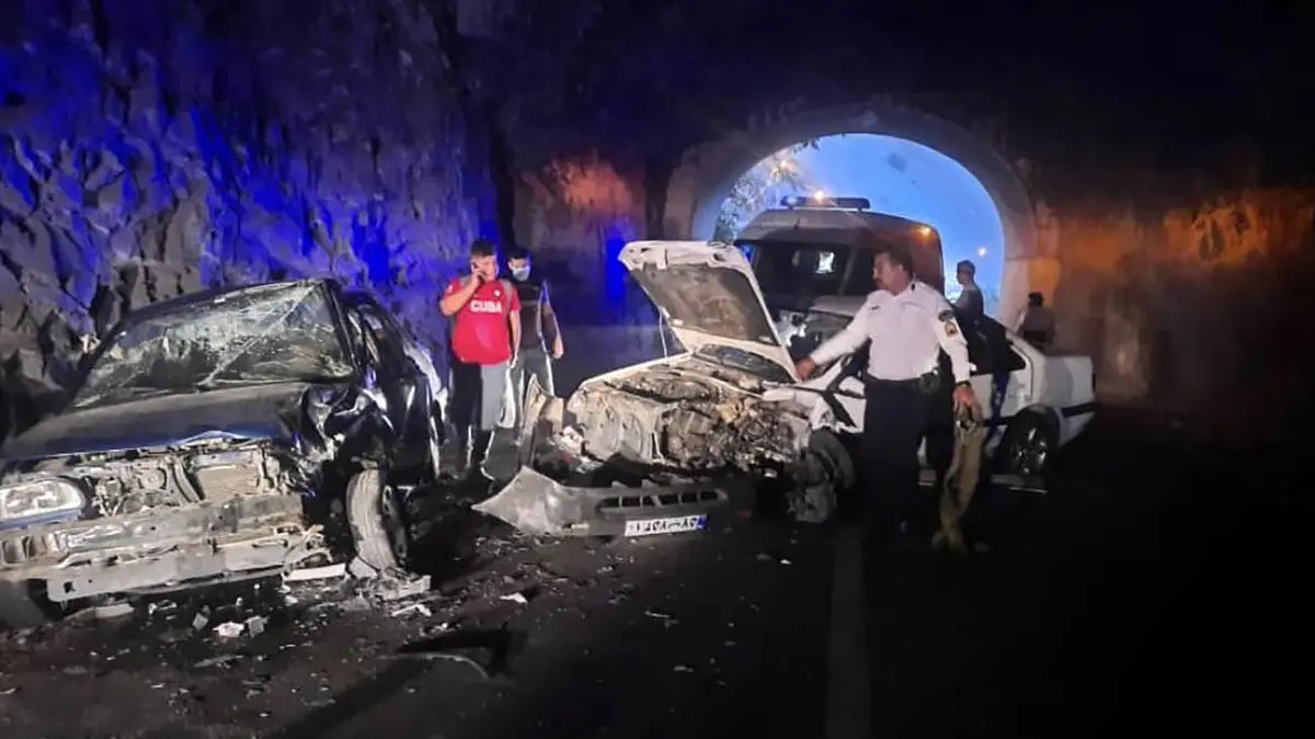 تصادف شدید پژو پارس با پراید در تونل جاده چالوس +عکس