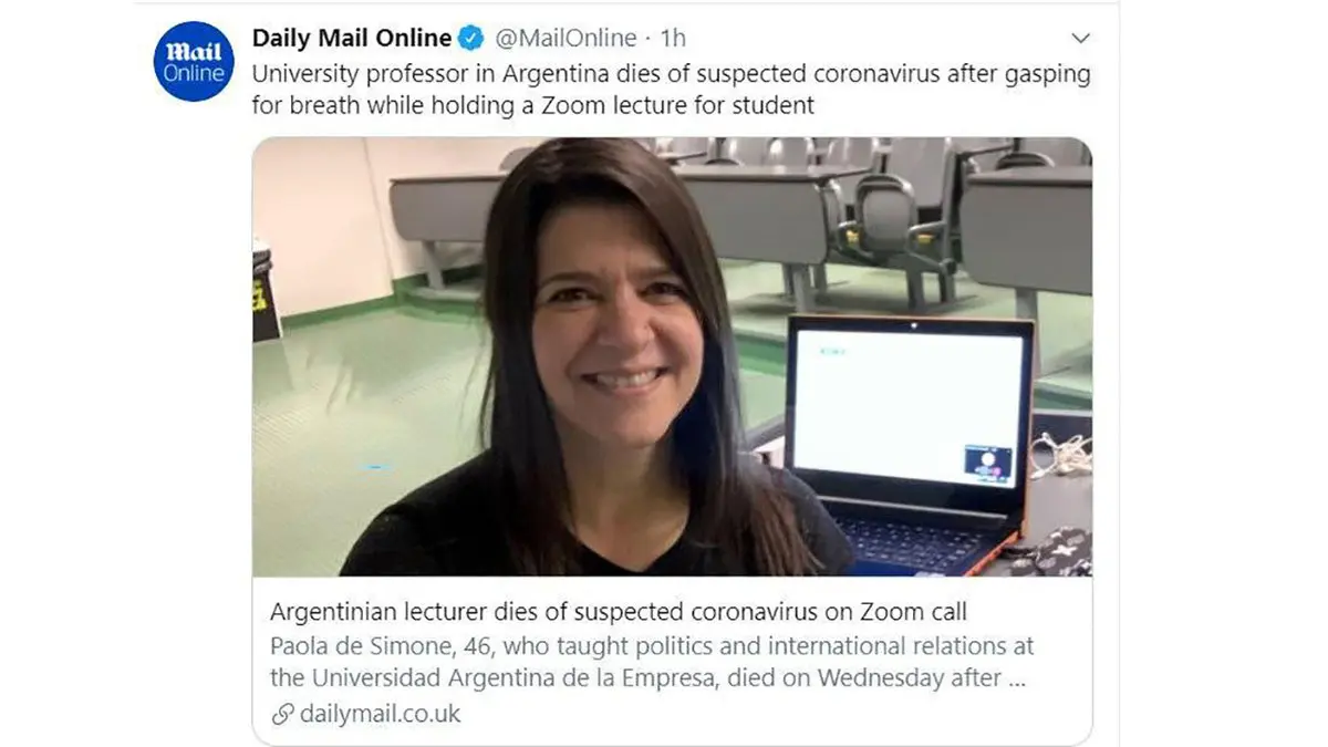 گزارش دیلی میل حاکی از آن است که استاد 46 ساله در ویدیو زوم هنگام تدریس علوم سیاسی دچار تنگی نفس شد و دانشجویان وقتی دیدند حال استادشان بد شده از وی آدرس خواستند تا اورژانس خبر کنند اما او نتوانست حرف بزند و در مقابل دانشجویانش جانش را از دست داد.
