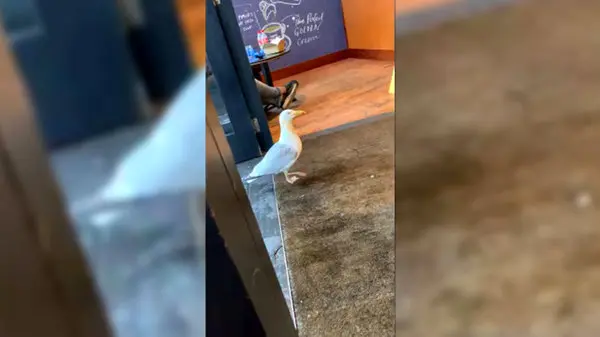حوادث رکنا:یک مرغ دریایی با ورود به یک کافه اقدام به سرقت از آن کرد.