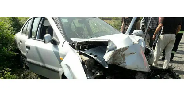 برخورد شدید سمند با تیر برق در رودسر + عکس