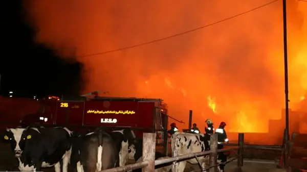 گاوداری اصفهان در آتش سوخت / پس از 10 ساعت مهار شد + عکس