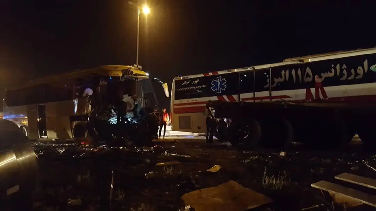 تصادف وحشتناک اتوبوس و تریلی در جاده کرج