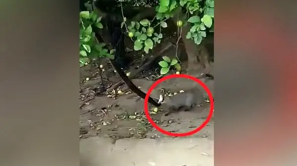 جهش خدنگ برای شکار مار غول پیکر از روی درخت! + فیلم