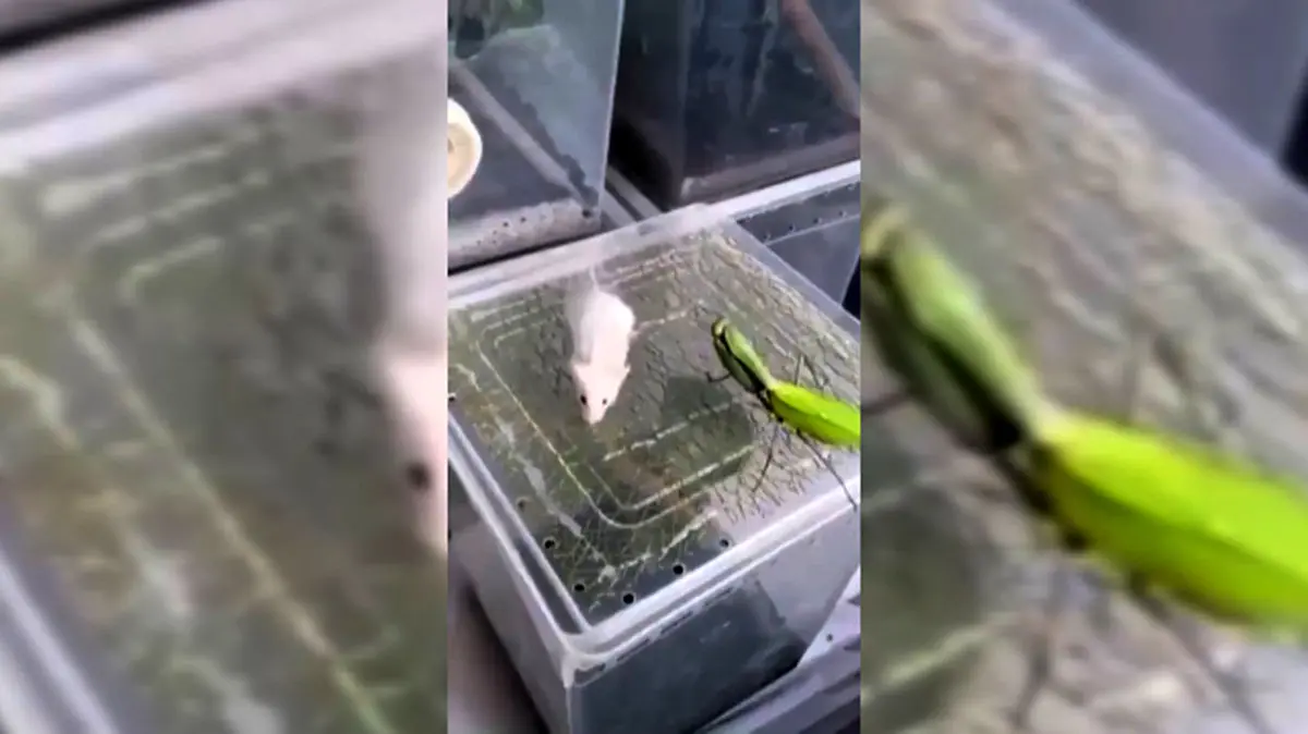 شکار دلخراش موش توسط مانتیس + فیلم باورنکردنی