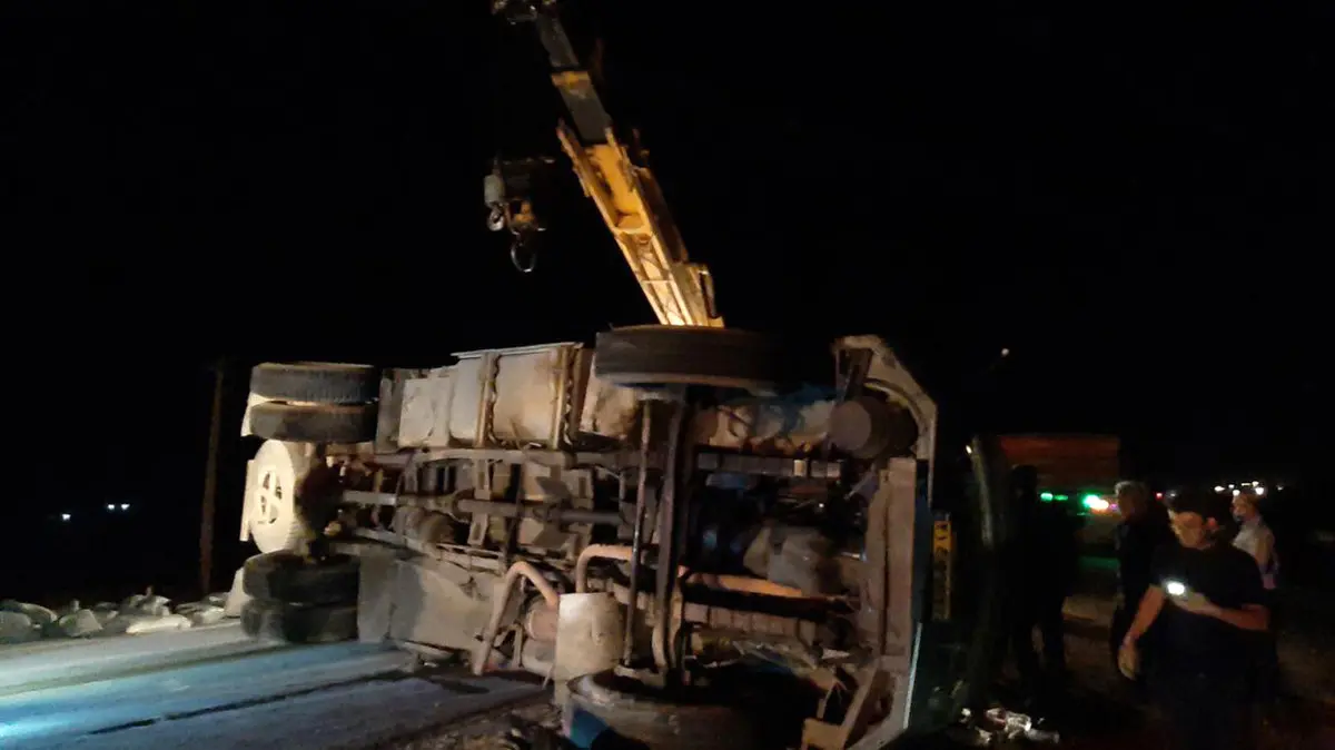 حوادث رکنا:یک کامیون در جاده گلپایگان به خوانسار واژگون شد.