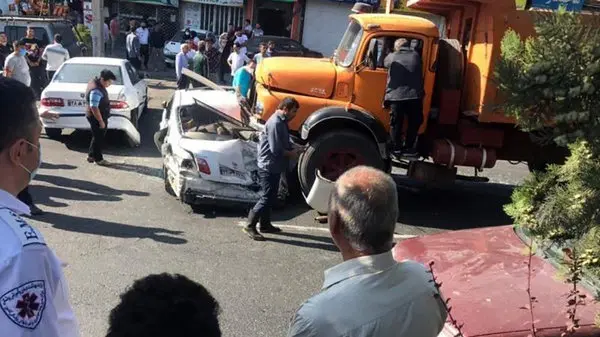 عکس له شدن پراید زیر چرخ های کامیون بی ترمز / در دماوند رخ داد