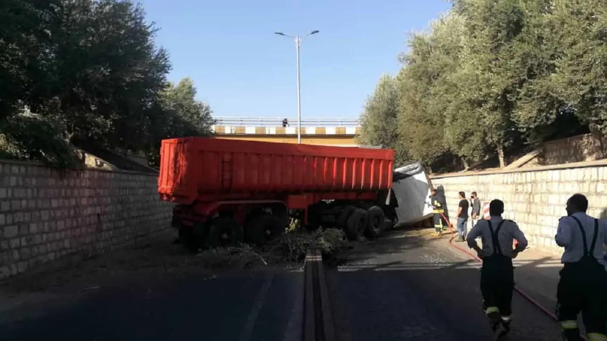 سقوط هولناک تریلر به زیر پل در یزد + عکس
