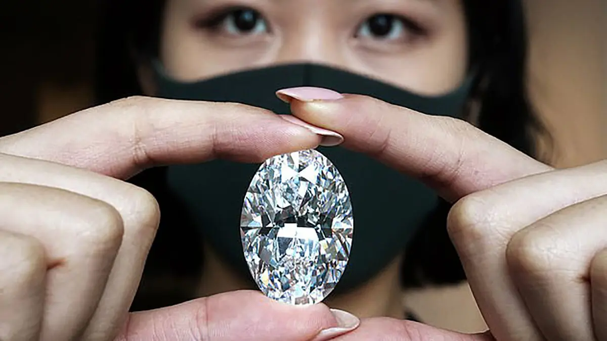 حوادث رکنا: الماس نادر و سفید رنگ ۱۰۲ قیراطی در حراجی هنگ کنگ به قیمت ۳۳ میلیون دلار فروخته شد.
