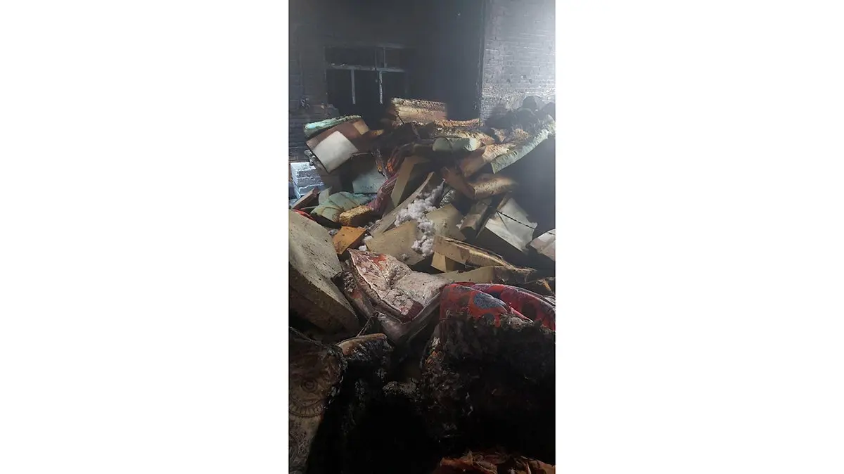 آتش نشانان مشاهده نمودند که حادثه در کارگاه لحاف و تشک دوزی در منطقه مسکونی اتفاق افتاده است.