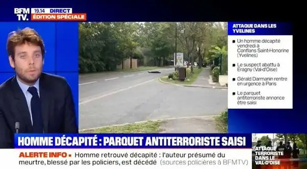 به گفته سخنگوی پلیس فرانسه این معلم دوره متوسطه قبلا کاریکاتورهایی را از پیامبر اسلام (ص) در کلاس نشان داده بود.