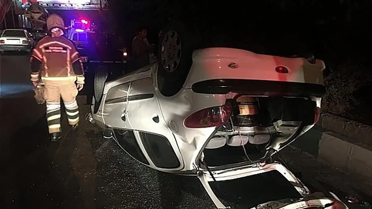 واژگونی خونین پژو 206 در اتوبان تهران _ قم با 6 زخمی