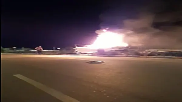 فیلم وحشتناک از آتش گرفتن خودرو پس از تصادف با تیربرق / در کیش رخ داد + فیلم