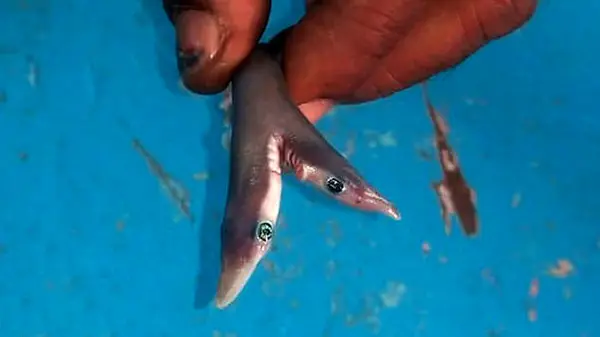 گزارش ها حاکی از آن است که ماهیگیر هندی کوسه تازه متولد شده ای را صید کرد که به گونه ای نادر دو سر داشت .