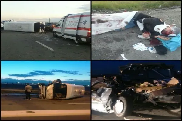عکس دلخراش از مصدومان تصادف خونین کامیون و مینی بوس در مازندران