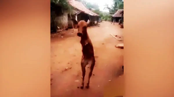 راه رفتن گوساله عجیب الخلقه به شکل انسان+ فیلم