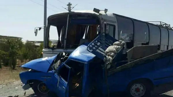 تصادف مرگبار وانت نیسان با اتوبوس با  یک کشته در اراک + عکس