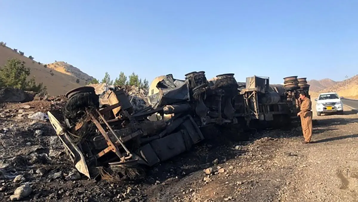 پس از چپ شدن و آتش سوزی در یک تانکر ایرانی در مرز باشماق راننده جان خود را از دست می دهد.