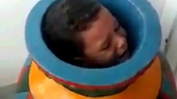 نجات پسر 6 ساله از داخل کوزه سفالی قدیمی + عکس
