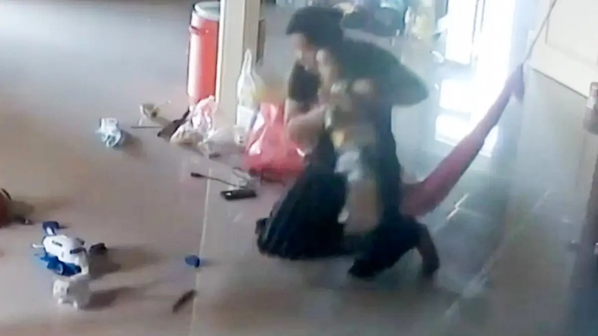ویدئویی که توسط دوربین مداربسته تهیه شده است چگونگی وقوع حادثه را نشان میدهد. در ابتدای این ویدئو در حالی که مادر این کودک روی زمین دراز کشیده و مشغول چک کردن موبایلش است فرزند او در حال بازی با گربه اسباب بازی اش دیده میشود.