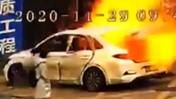 گازسوز کردن خودرو در چین هم حادثه آفرید + فیلم