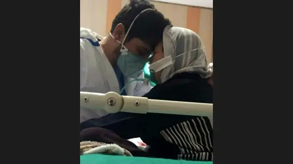 حوادث رکنا: عکسی تلخ از پرستار کرونایی و مادرش در بیمارستان در فضای مجازی دست به دست می چرخد.