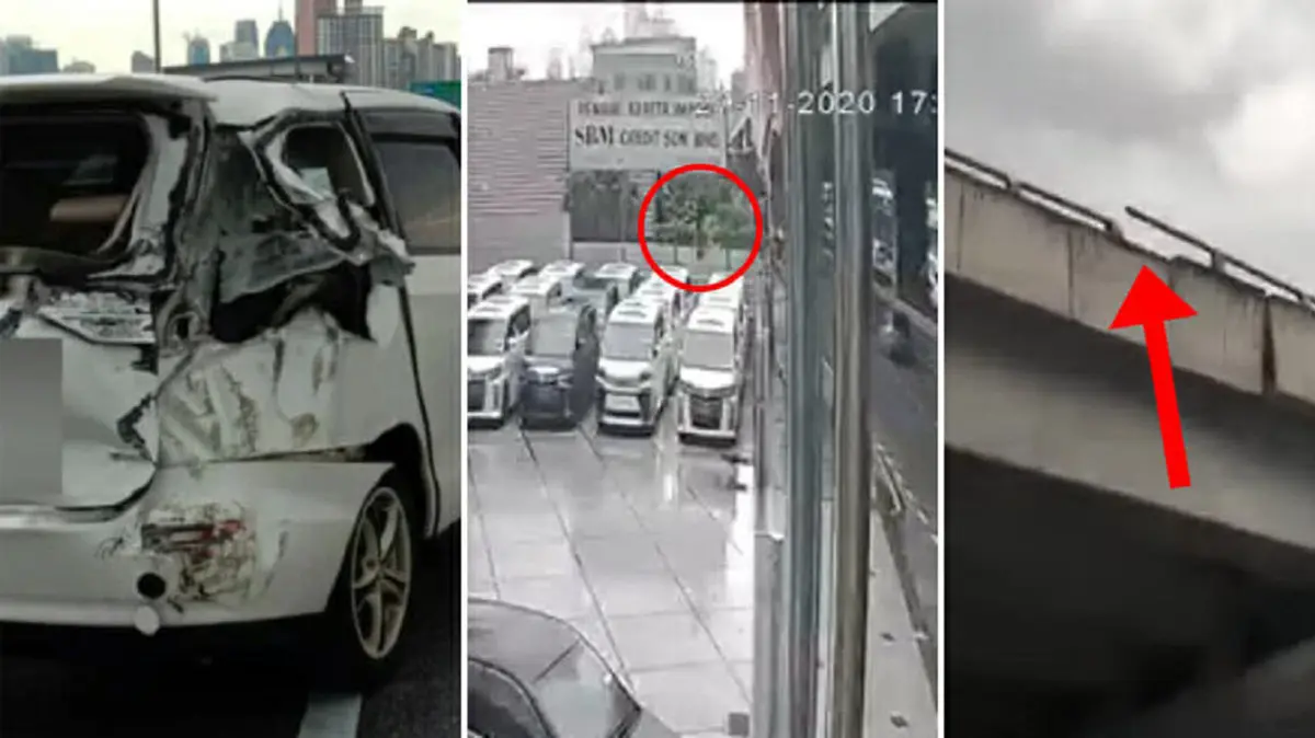 ویدئویی که توسط دوربین مدار بسته تهیه شده است لحظه وحشتناک سقوط این کودک از بالای پل را به تصویر میکشد. در این ویدئو مشاهده میشود این دختر از ارتفاع ۱۵ متری پل در محوطه یک پارکینگ فروشگاه خودرو فرود میآید. بنا به گزارش رسانههای محلی مالزی این حادثه جمعه هفته گذشته ۲۷ نوامبر در اتوبان «دوکه» در نزدیکی منطقه «جالان تون رازاک» رخ داد.