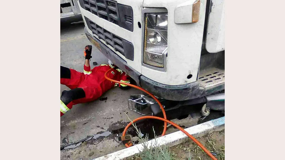 نجات نوجوان موتورسوار از زیر تریلی در کاشان + عکس