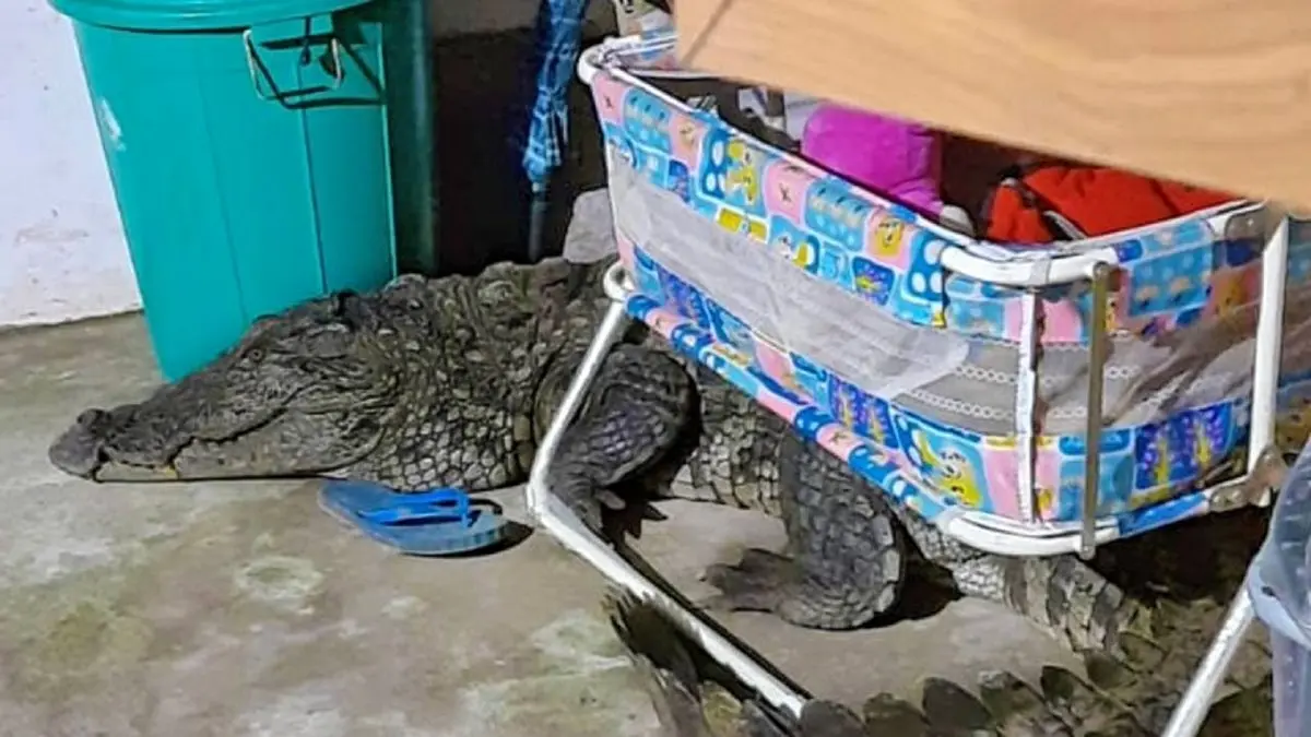 حوادث رکنا:ورود شب هنگام و غافلگیرانه یک تمساح غول پیکر به داخل خانه ای در هند موجب وحشت ساکنان آن شد.