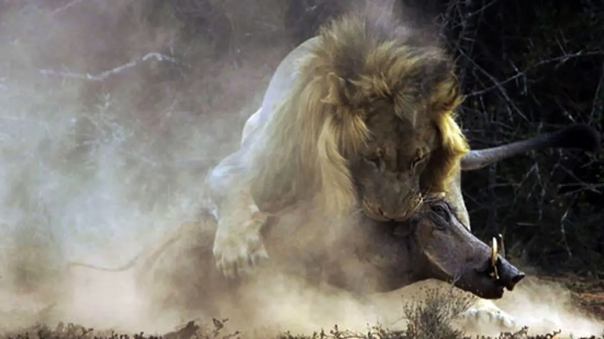 فیلم لحظه دریده شدن گرازها توسط یک گله شیر