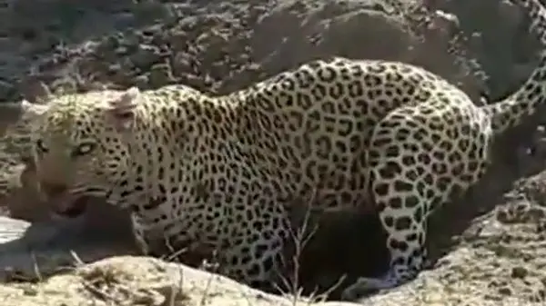 فیلم عجیب از بیرون کشیدن شکار توسط پلنگ گرسنه از دل زمین