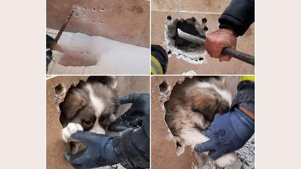 حوادث رکنا: سگ گرفتار در تـبـریـز نجات یافت.