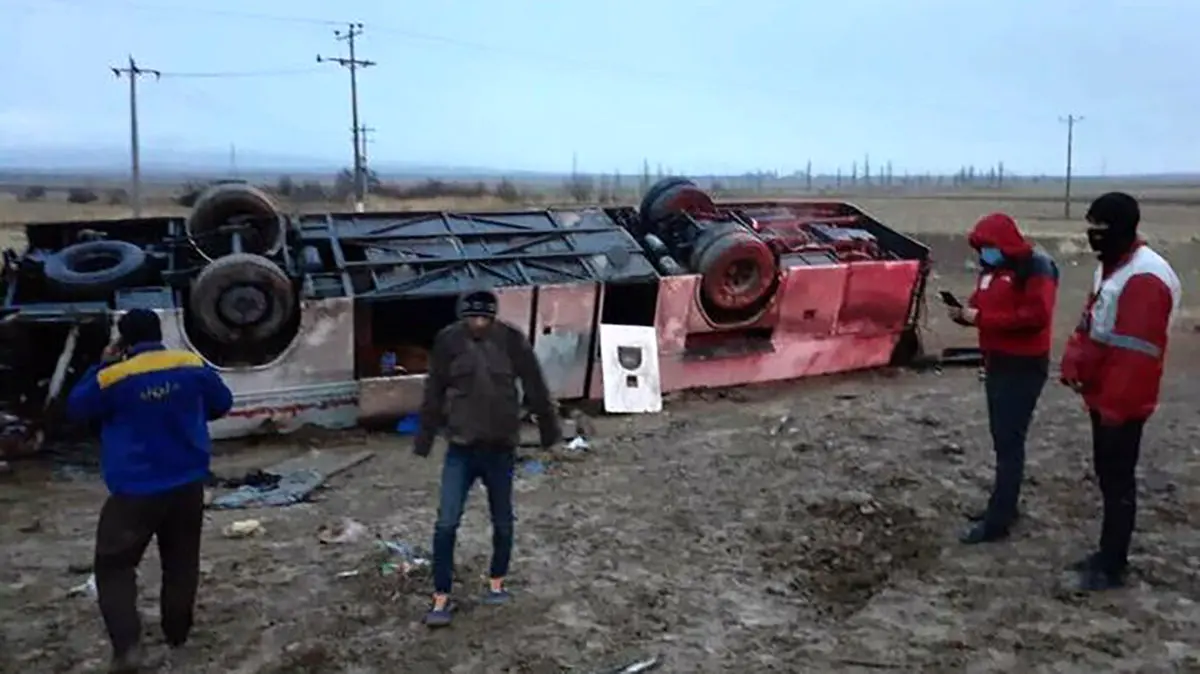 واژگونی اتوبوس با 17 مصدوم در محور بجنورد _ گلستان