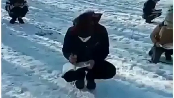رکنا: دانش آموزان و معلم ، وسط برف ؛ در سرما و یخبندان با دستانی یخ بسته و بدنی لرزان از سوز در حال درس خواندن هستند. این تصویر فیلمی است که از منطقه چالداران در استان آذربایجان غربی در فضای مجازی دست به دست می شود.