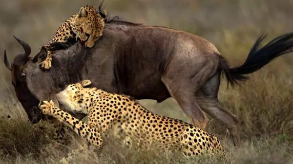 شکار دیدنی گوزن یالدار توسط چند یوزپلنگ + فیلم