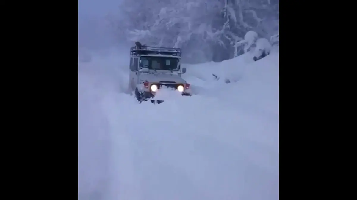 لندکروزی که در برف کلاردشت گیر کرد + فیلم