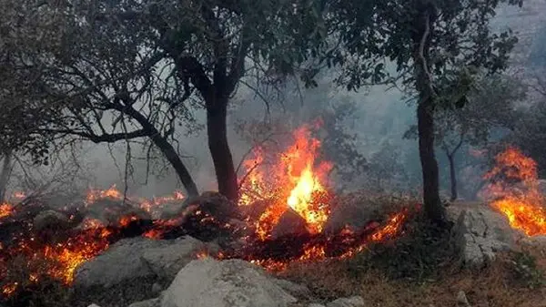 کوه دمه اندیکا خوزستان در آتش میسوزد