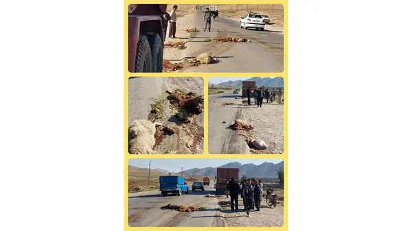 تصادف مرگبار راننده کامیون با گله گوسفندان + عکس