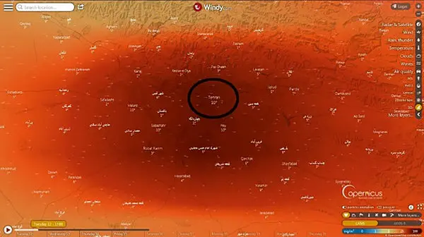 عکسی از هوای آلوده تهران را مشاهده می کنید که با توجه به قطعی برق و خاموشی نیروگاه ها همچنان غلظت آلاینده بالاست و شاخص آلودگی ، بنابر آمارهای سامانه پایش هوای کشور، ۱۸۱ است و برای همه ناسالم است.آخرین قیمت های بازار ایران را اینجا کلیک کنید.
