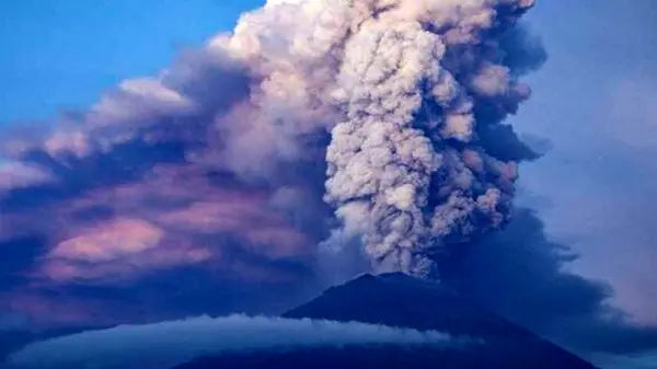 فوران یک کوه آتشفشان در اندونزی + فیلم