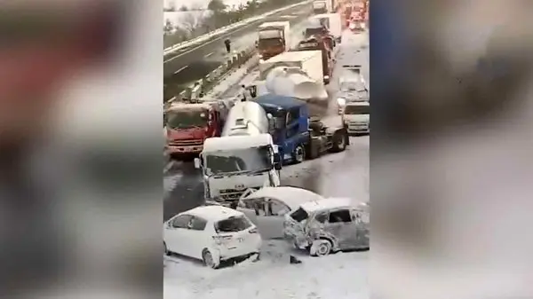 حوادث رکنا: وقوع تندباد و کولاک در شمال ژاپن موجب شد 134 خودرو در بزرگراهی گرفتار شوند.