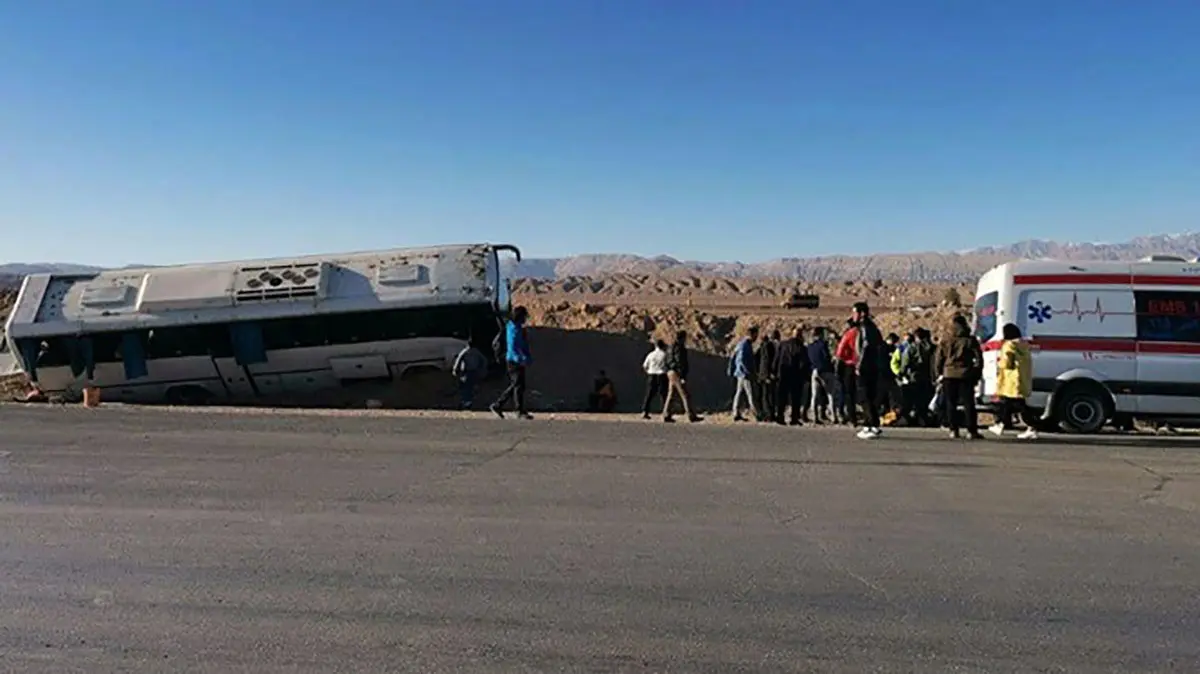 حوادث رکنا: یک اتوبوس در محور تهران- سمنان به طرز هولناکی واتژگون شد.