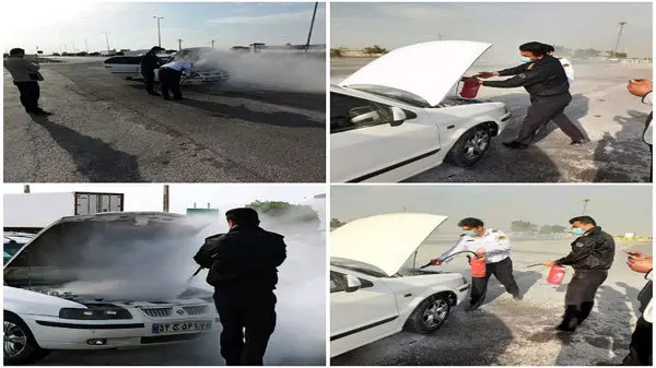 افسر نگهبان با هماهنگی و همراهی جانشین پلیس راه با استفاده از سه دستگاه کپسول اطفاء حریق موجود در پلیس راه، به یاری راننده و خانوادهاش شتافتند.