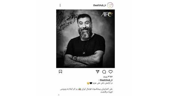 حوادث رکنا : پیج afc در پی درگذشت علی انصاریان تسلیت گفت.
