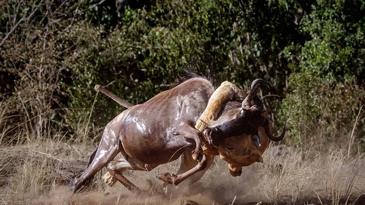 فیلم دیدنی از شکار گوزن یالدار توسط شیر + فیلم
