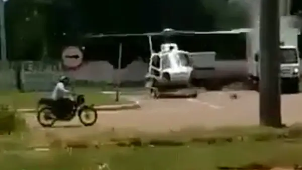 یک بالگرد که به دلایل نامعلومی، در یکی از خیابانهای کشور برزیل فرود آمده بود، به طرز وحشتناکی با دو کامیون برخورد کرد.