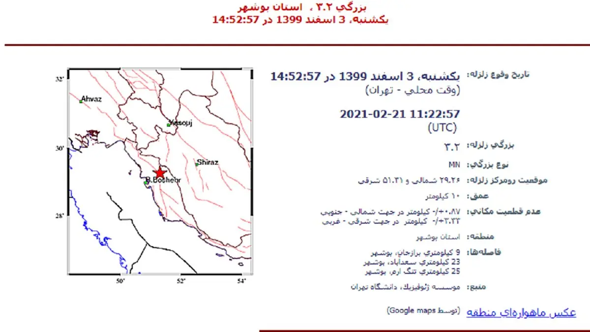جرئیات زلزله در برازجان