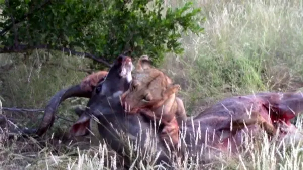فیلم دلهره آور از حمله شیر خشمگین به 2 کودو + فیلم