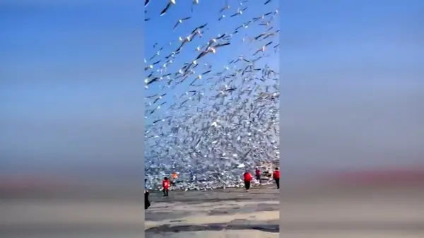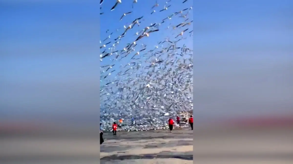 فیلم / هجوم حیرت انگیز مرغهای دریایی به یک دریاچه